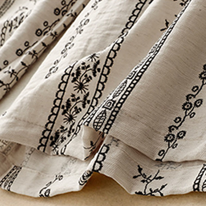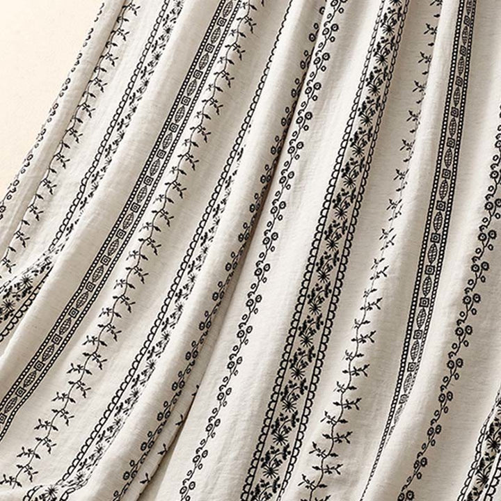 Buddha Stonesカジュアル 縦プリント コットンリネン レディース ワイドレッグパンツ ポケット付き
