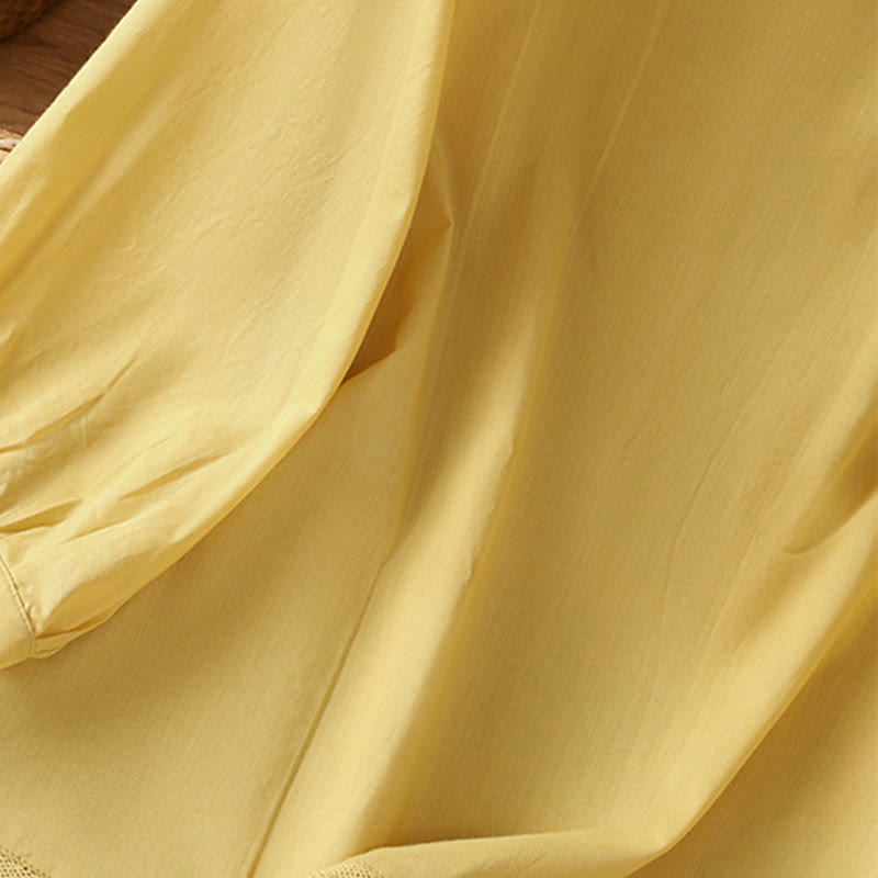 Buddha Stonesプレーン レースヘム シングルブレスト ボタン コットンリネン 七分袖 レディース クルーネック シャツ - image 20