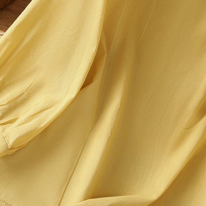 Buddha Stonesプレーン レースヘム シングルブレスト ボタン コットンリネン 七分袖 レディース クルーネック シャツ - image 6