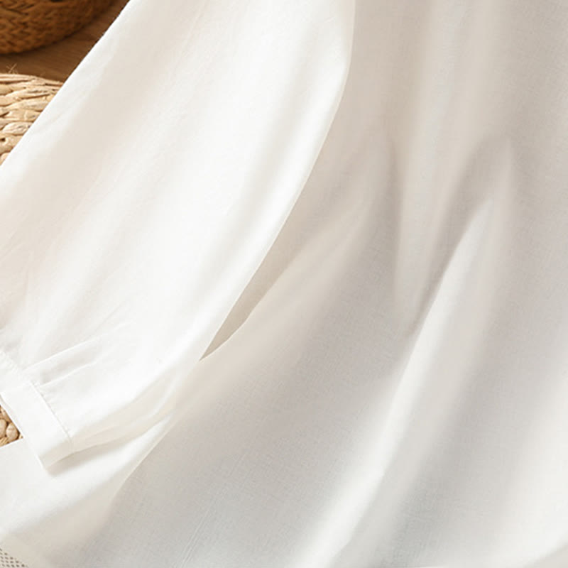 Buddha Stonesプレーン レースヘム シングルブレスト ボタン コットンリネン 七分袖 レディース クルーネック シャツ - 白 - US14、 UK/AU18、 EU46 (2XL) - image 10
