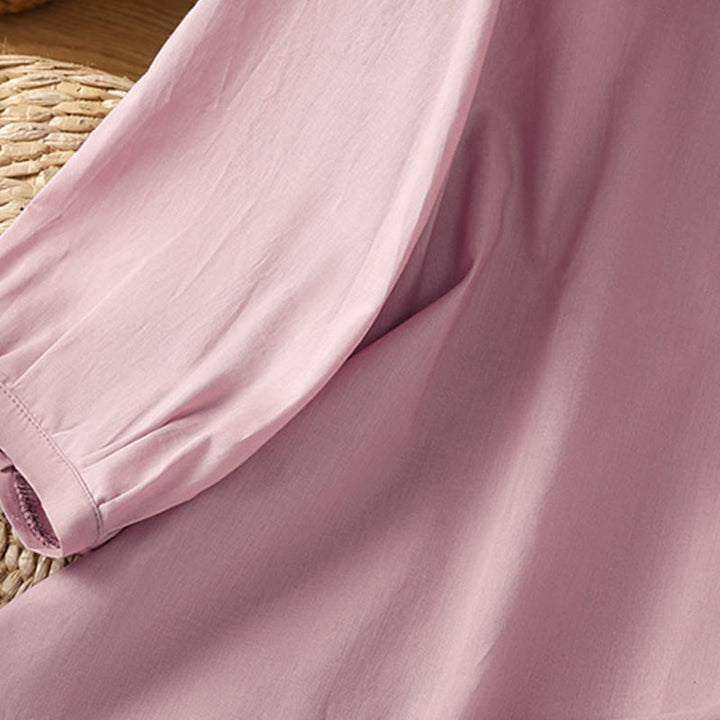 Buddha Stonesプレーン レースヘム シングルブレスト ボタン コットンリネン 七分袖 レディース クルーネック シャツ - 梅 - US14、 UK/AU18、 EU46 (2XL) - image 19