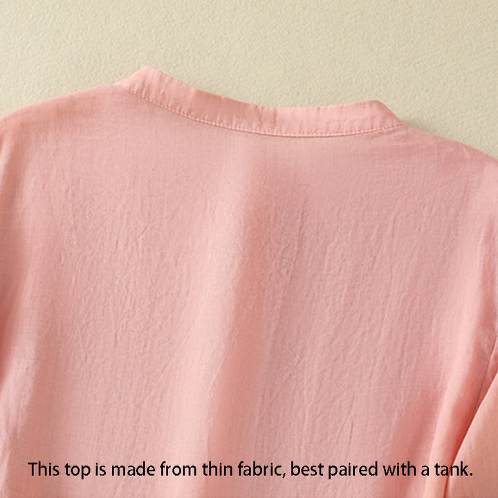 Buddha Stonesローズフローラル刺繍ボタン半袖レディースコットンシャツ - image 6