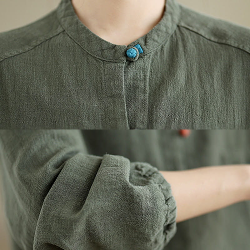 Buddha Stonesのカラフルなボタンデザイン長袖レディースコットンリネンシャツ - image 10