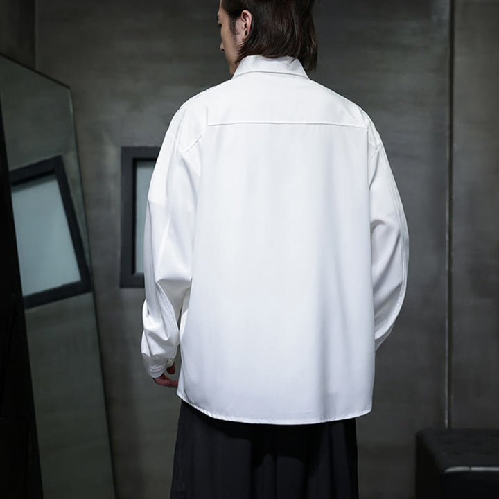 Buddha Stonesヴィンテージ純色中国風カエルボタンデザイン刺繍ラペルメンズ長袖シャツ - 白 - US/UK/AU46、 EU56 (5XL) - image 14