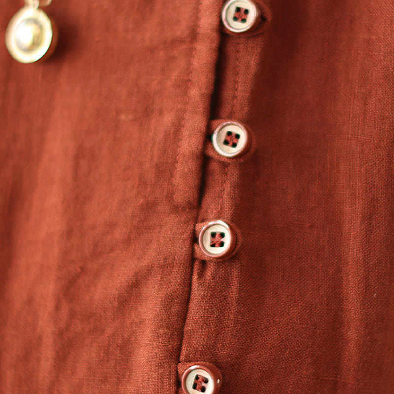 Buddha Stonesオレンジレッド レースアップデザイン 長袖 コットン ミディドレス ポケット付き - image 12