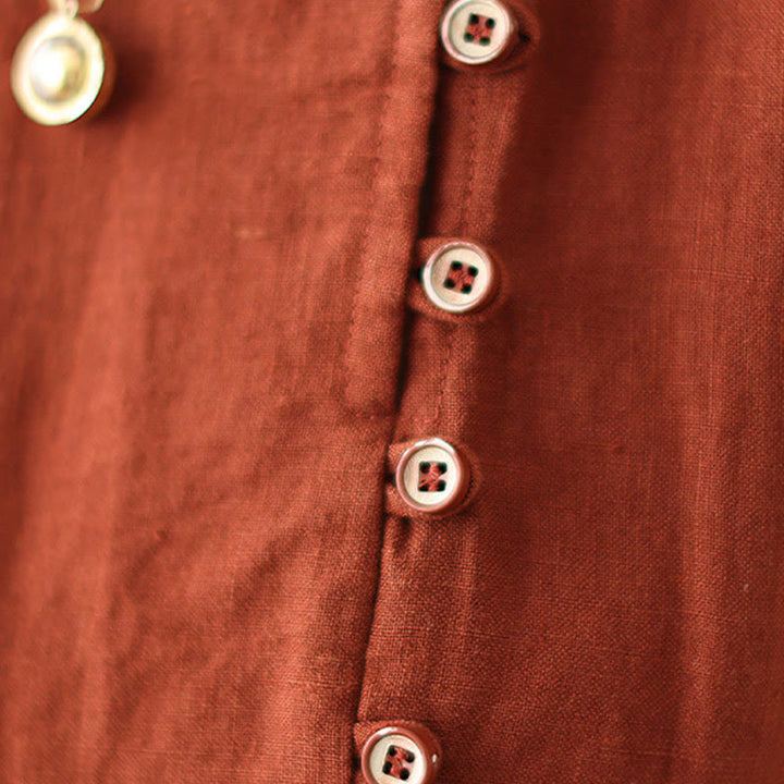 Buddha Stonesオレンジレッド レースアップデザイン 長袖 コットン ミディドレス ポケット付き