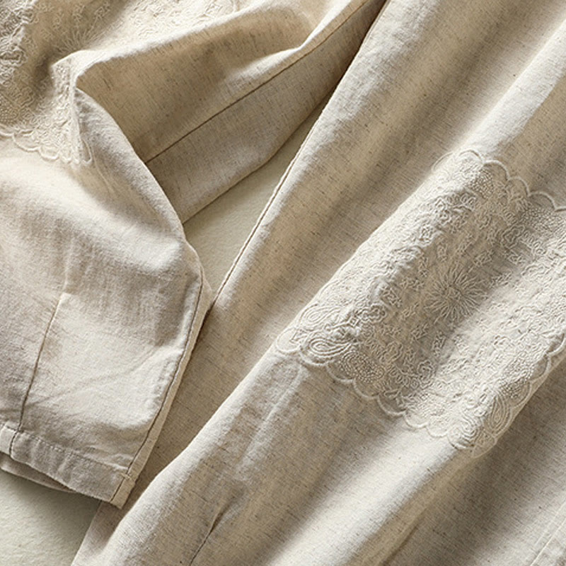 Buddha Stonesヴィンテージ サマー カジュアル 刺繍 ペイズリー柄 レディース コットンリネン ハーレムパンツ ポケット付き