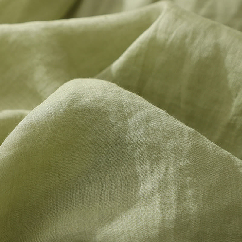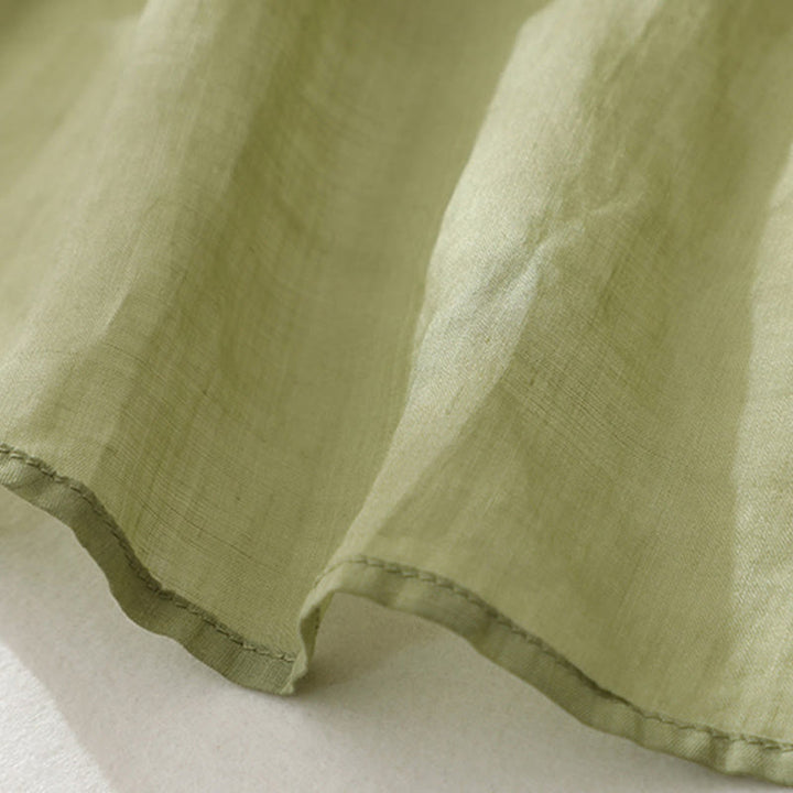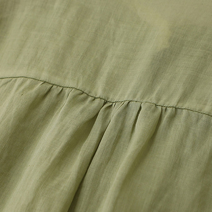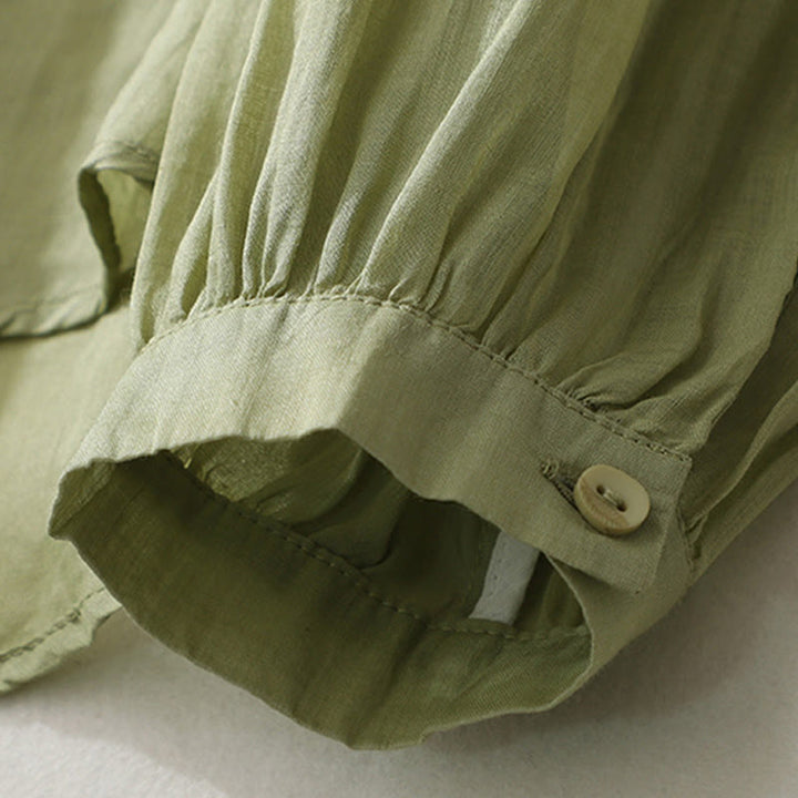 Buddha Stones純色 レースデザイン ロング ランタンスリーブ レディース コットンリネン シャツ - 黄緑 - US14、 UK/AU18、 EU46 (2XL) - image 1