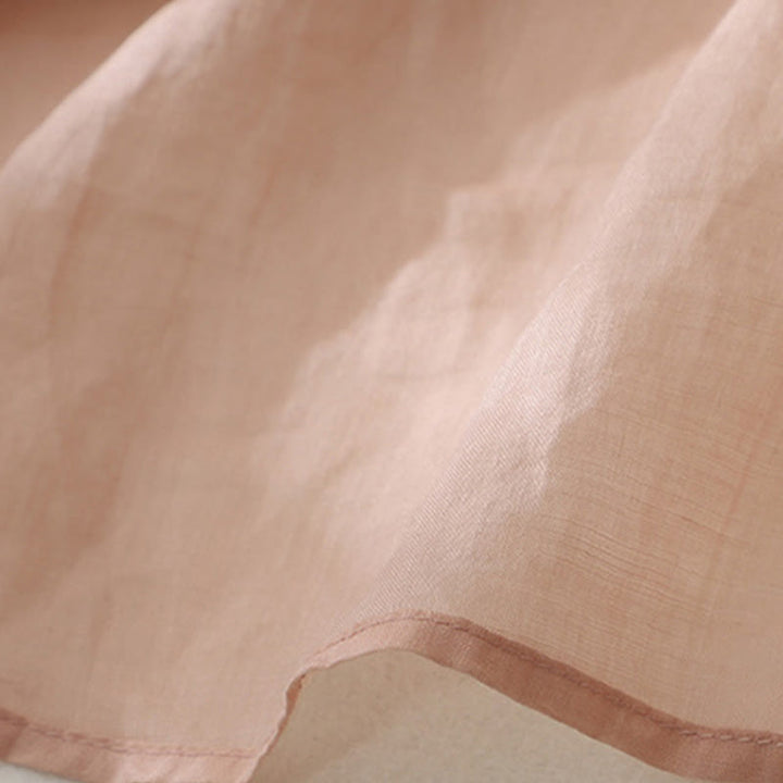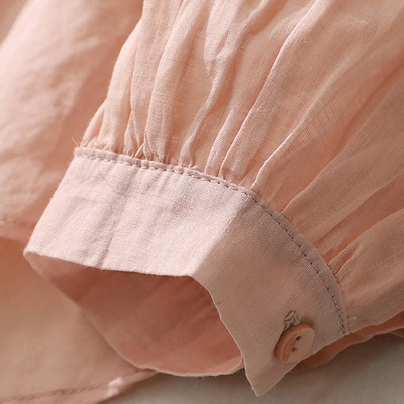 Buddha Stones純色 レースデザイン ロング ランタンスリーブ レディース コットンリネン シャツ - ライトサーモン - US14、 UK/AU18、 EU46 (2XL) - image 11