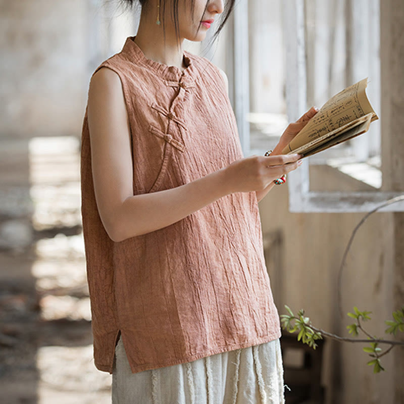 Buddha Stones夏用タイダイフロッグボタンラミーコットンノースリーブレディースベスト - image 24