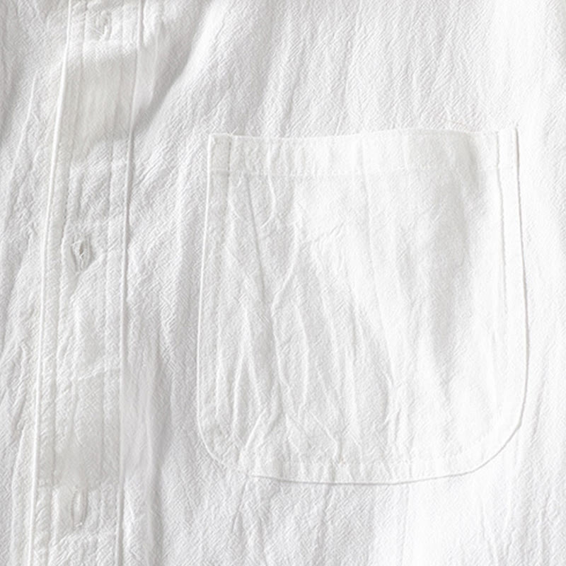Buddha Stones夏用 無地 メンズ ボタン 半袖 コットンリネン シャツ