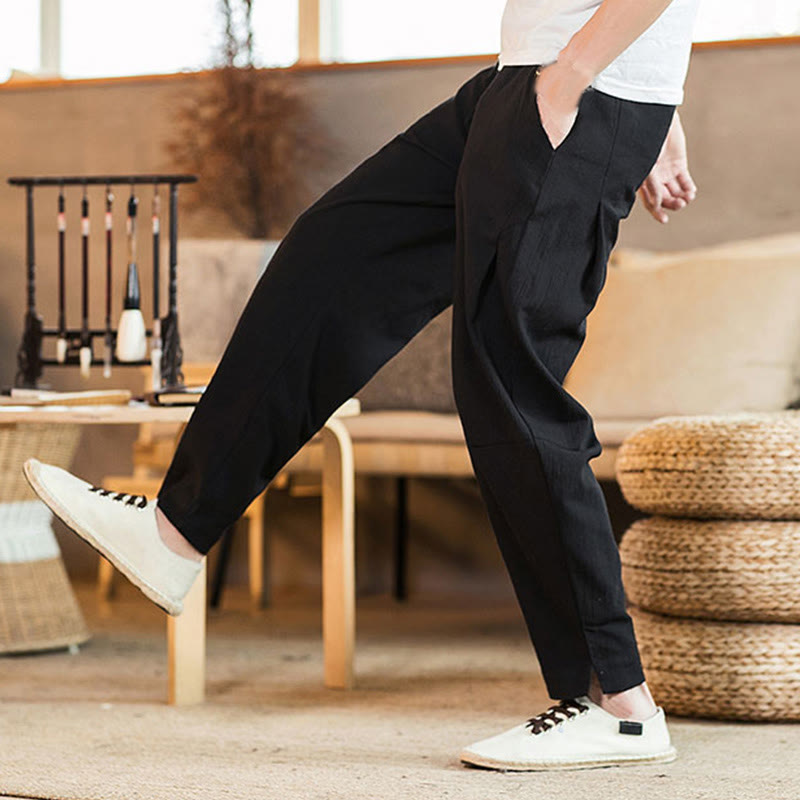 Buddha Stones無地 リネン ドローストリング テーパード メンズ パンツ ポケット付き - image 38