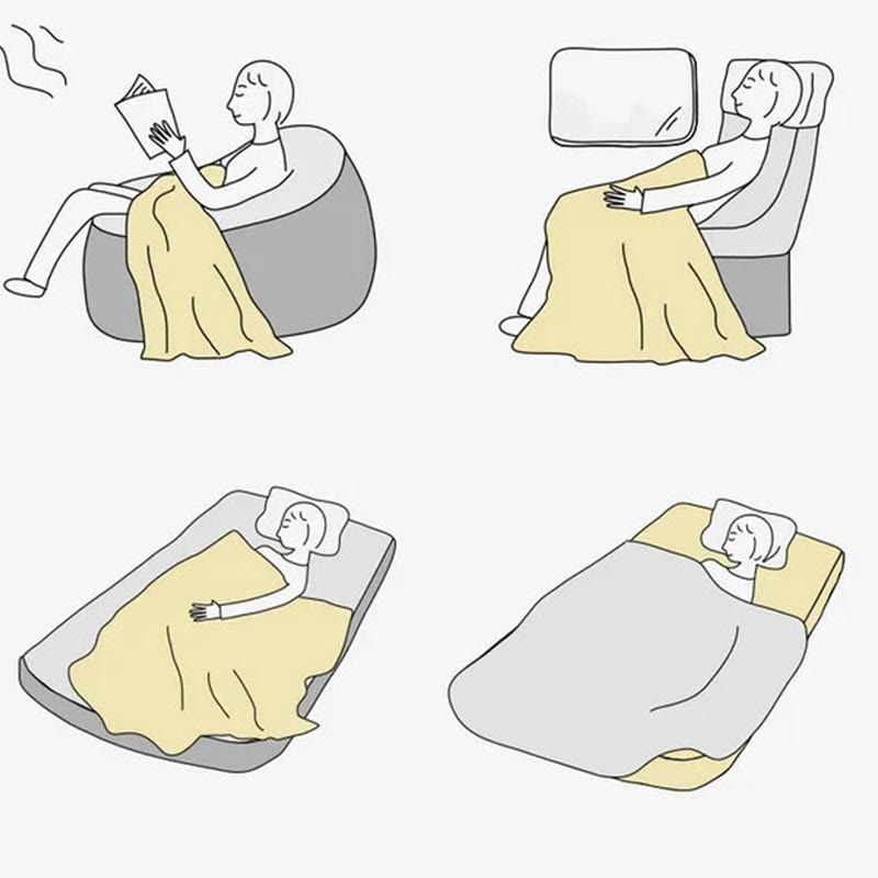 - 涼しい夏の夜でも、厳しい冬の日でも、芝生の上に敷いたり、肩に巻いたりできるブランケットは、どの家庭にも一台あるといいですね。