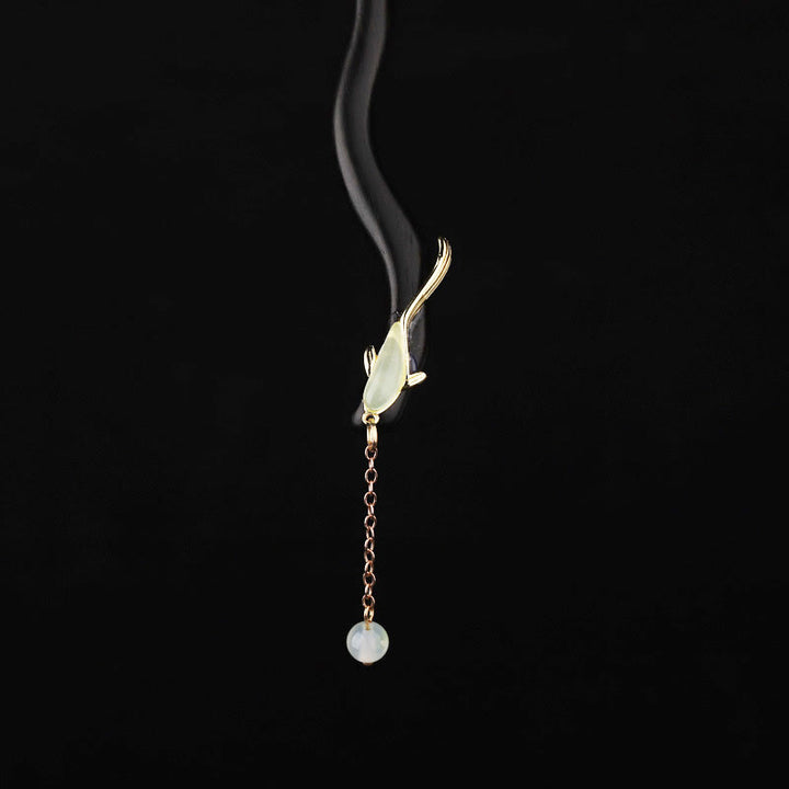 Buddha Stones黒檀 和田翡翠 魚の祝福 簪