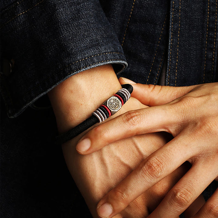 チベット密教の伝統では、儀式の際に手首に紐や紐を巻くことが一般的です。伝統的に、ラマ僧は紐を祝福し、結び目を作り、マントラを込めます。他の伝統と同様に、これらの赤い紐は幸運をもたらし、守護をもたらすと言われています。古代中国の伝説では、運命の赤い糸は目に見えないもので、人生が絡み合うすべての人々を結びつけます。これは中国の縁結びの神である月老によって支配されており、結婚する運命にある二人の絆と深く結びついています。歴史を通して、そして様々な哲学において、赤い紐は守護、信仰、幸運、強さ、そして繋がりのために身に着けられてきました。
