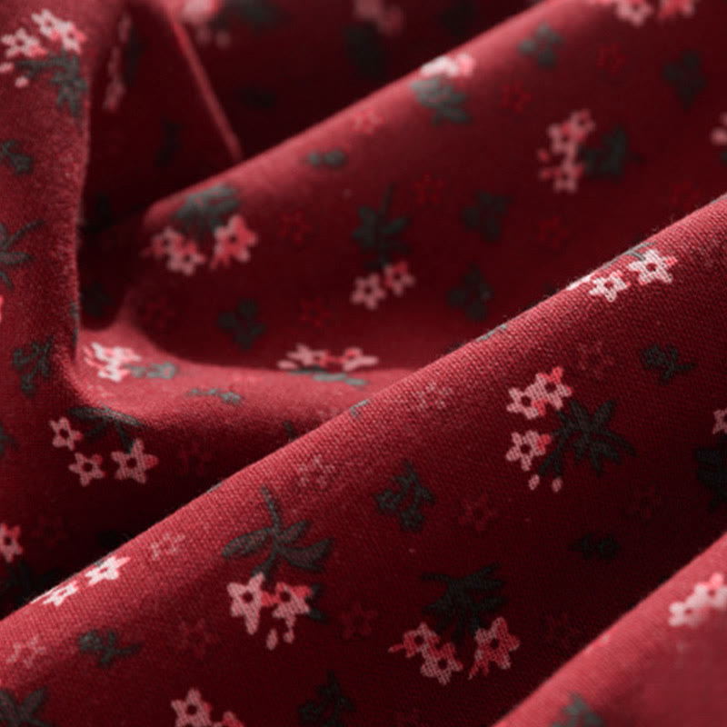 Buddha Stonesの花柄レースパッチワークデザイン長袖コーデュロイミディドレス(ポケット付き) - ファイアブリック - US8-10,UK/AU12-14,EU40-42 (2XL) - image 0