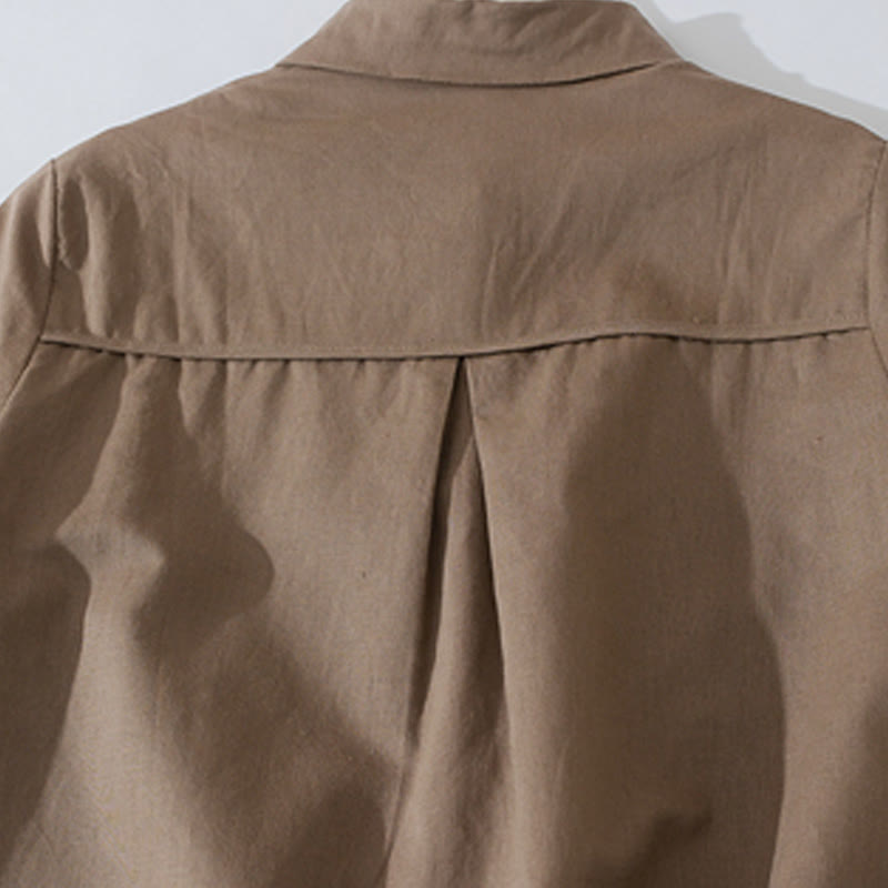 Buddha Stonesサマー レトロ 無地 ボタンデザイン 半袖 コットン ミディドレス ポケット付き - タン - US8-10,UK/AU12-14,EU40-42 (2XL) - image 9