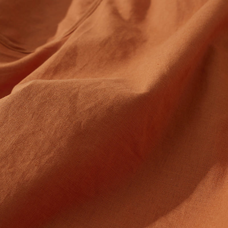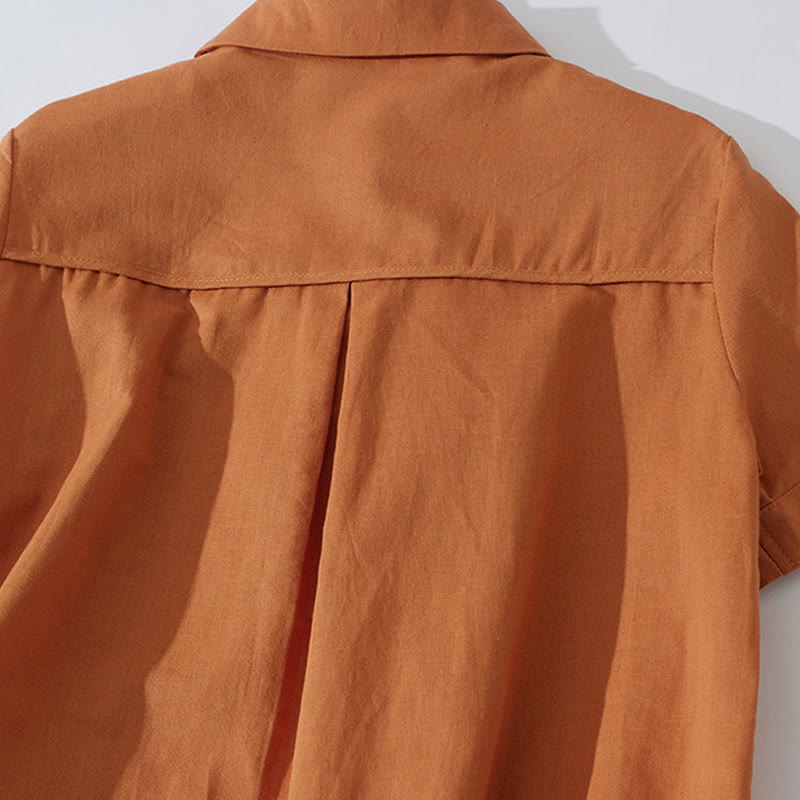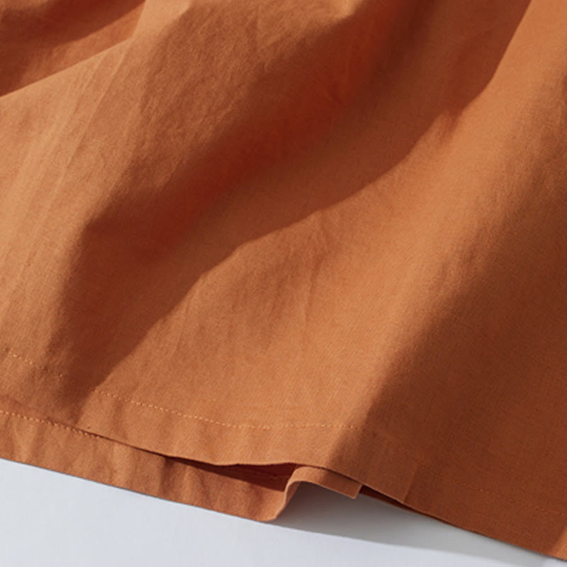 Buddha Stonesサマー レトロ 無地 ボタンデザイン 半袖 コットン ミディドレス ポケット付き - ダークオレンジ - US8-10,UK/AU12-14,EU40-42 (2XL) - image 0
