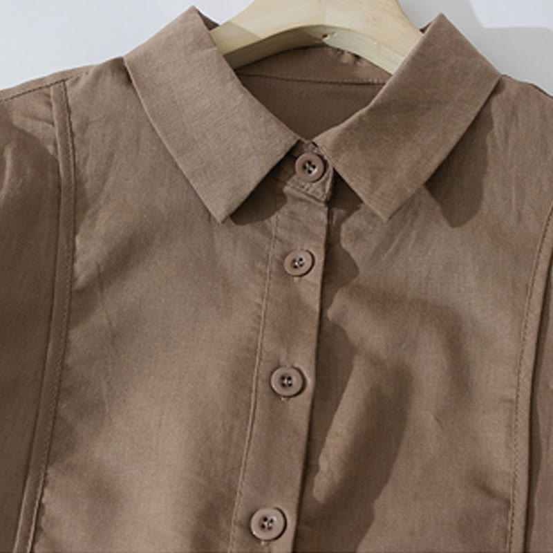 Buddha Stonesサマー レトロ 無地 ボタンデザイン 半袖 コットン ミディドレス ポケット付き - image 1