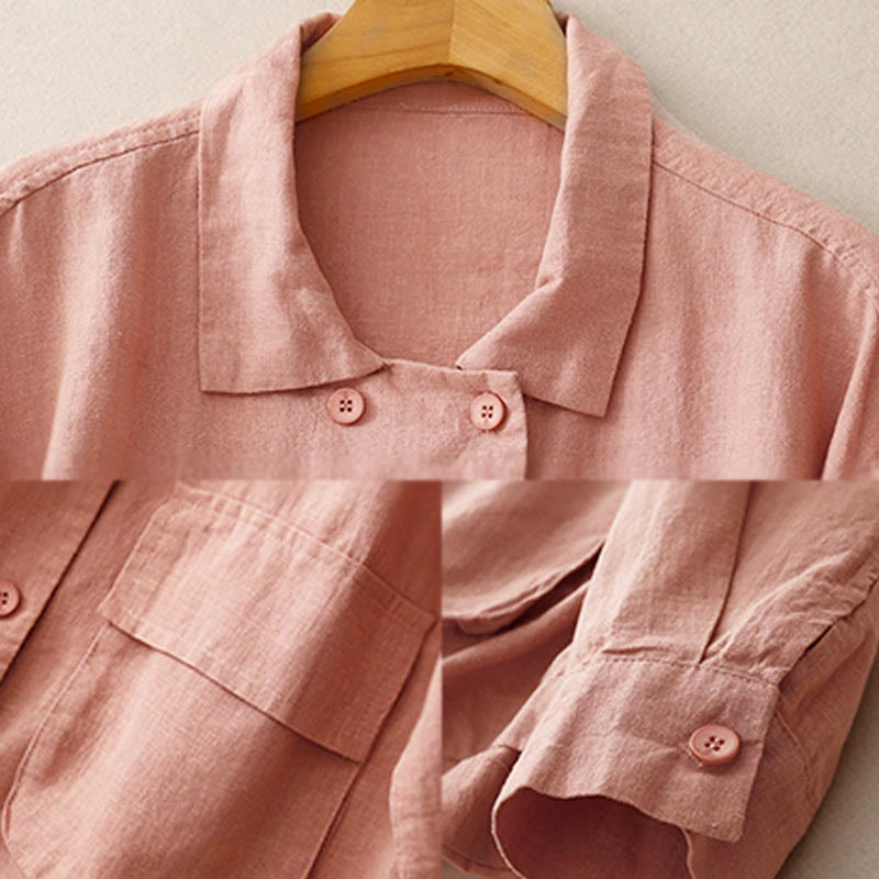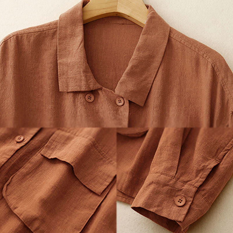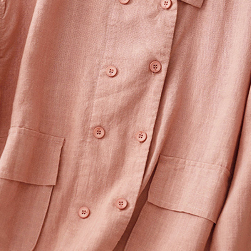 Buddha Stonesダブルブレストデザイン 長袖 レディース コットンジャケット ポケット付き - ダークサーモン - US14、 UK/AU18、 EU46 (2XL) - image 17