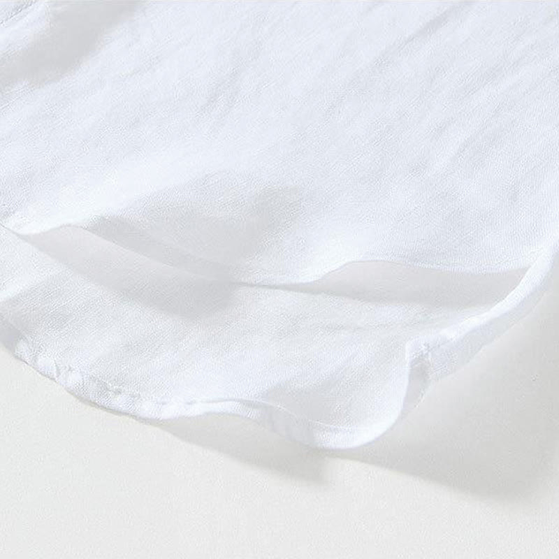 Buddha Stonesデイリーフロッグボタンスタンドカラー半袖リネンメンズシャツ
