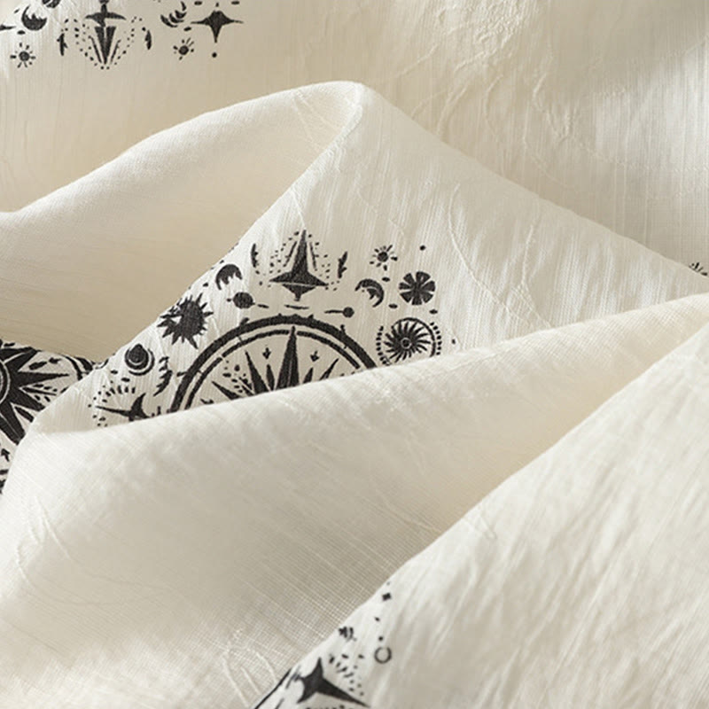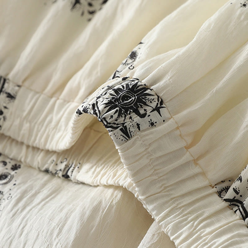 Buddha Stonesボヘミアンプリント天体柄レディースワイドレッグコットンパンツ(ポケット付き)