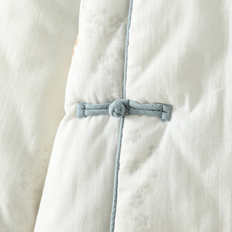 Buddha Stonesレディース ブルーフラワー フロッグボタンデザイン 長袖 サーマルジャケット