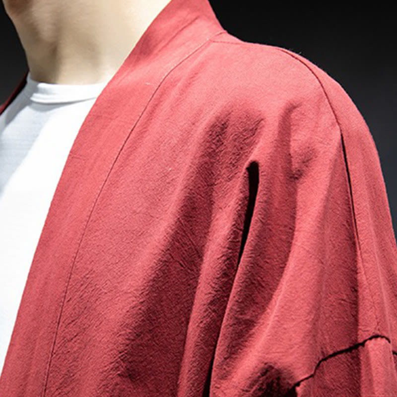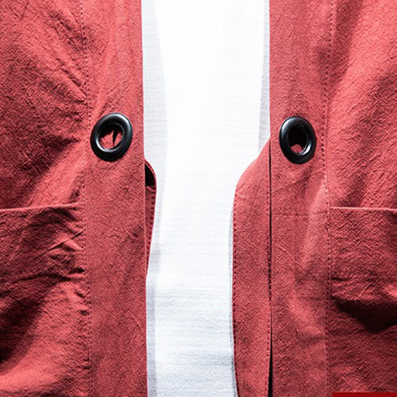 Buddha Stones無地 レースアップ オープンフロント ジャケット コットン メンズ 着物 - トマト - US/UK/AU46、 EU56 (5XL) - image 12