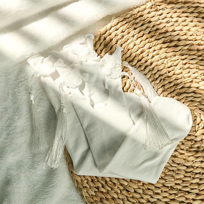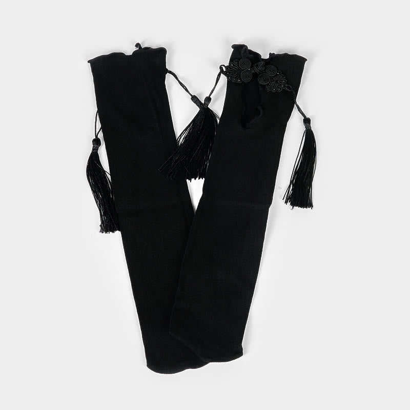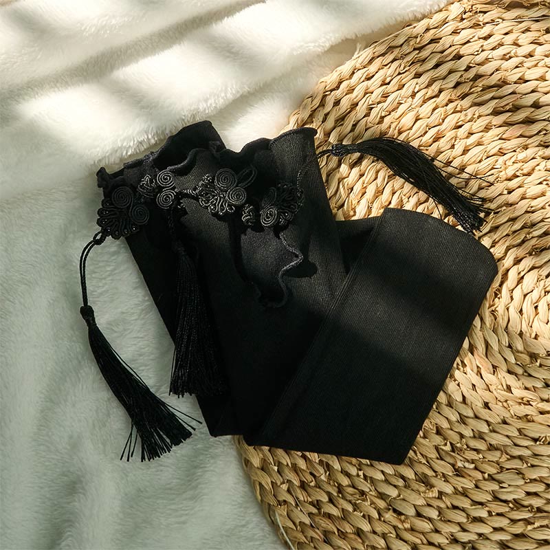 - 伝統にインスパイアされたディテール: エレガントな中国のカエルボタンのアクセントと繊細なタッセルが特徴のこのミドル丈ソックスは、古典的なチャイナドレスの美しさに現代的なひねりを加えています。