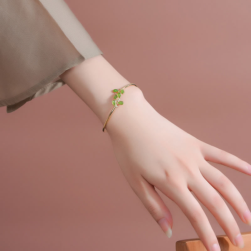 Buddha Stones925スターリングシルバー リーフタッセルデザイン グリーンジャスパー プロテクションネックレス ペンダント - 925スターリングシルバーバングル - image 8